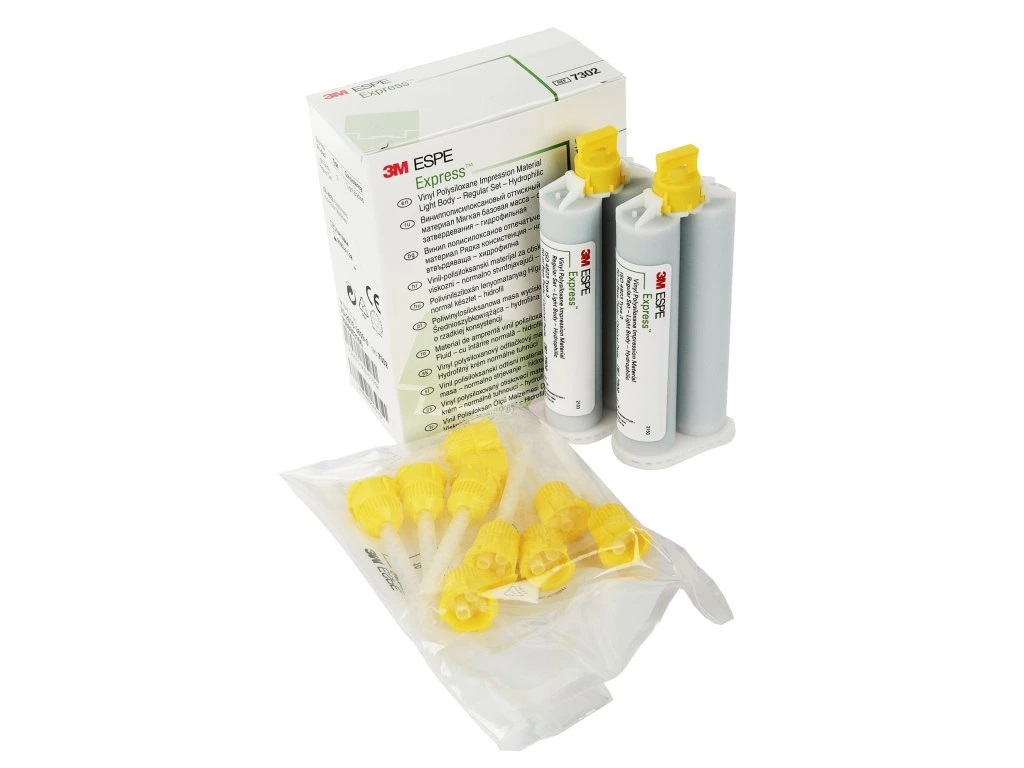 Express impression material offers a hand-mix putty and convenient delivery with the easy-to-use cartridge dispenser. Bulk refill includes 10 cartridges LB/Fast Set-50 ml each. Indication Crown and bridge impressions. Inlay and onlay impressions. Denture and partial denture impressions. Specification The first VPS automix...