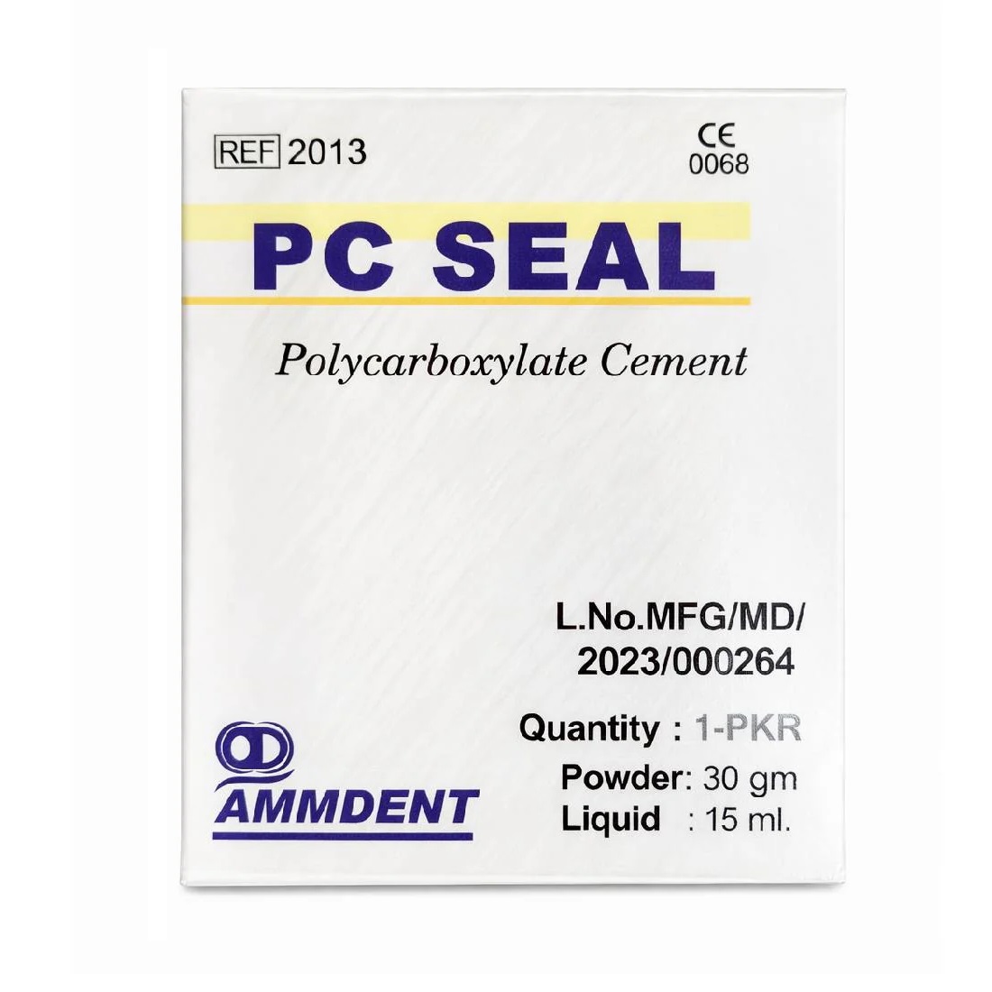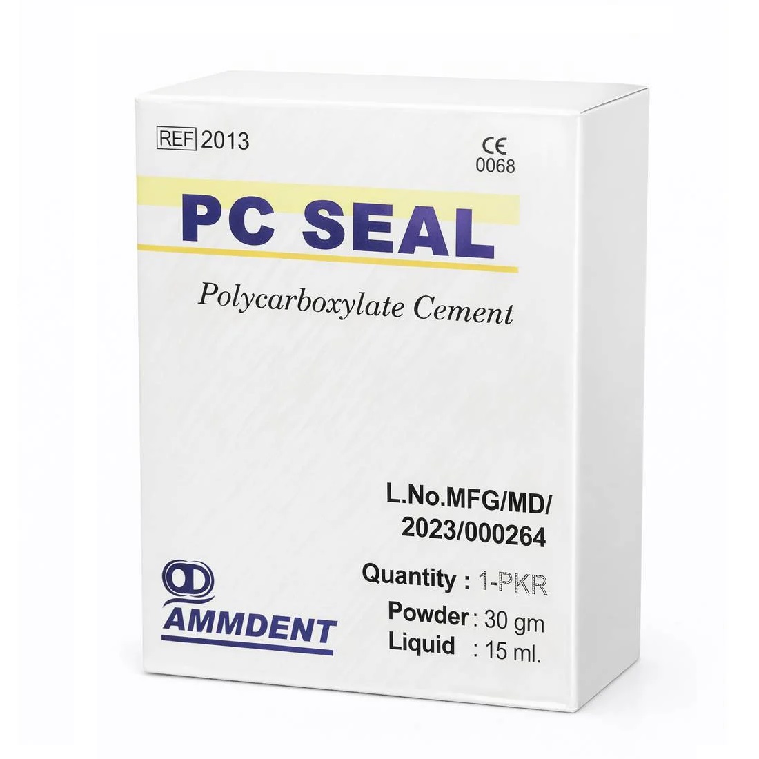 Ammdent PC Seal Polycarboxylate Cement is a high-quality Zinc Polycarboxylate dental cement used primarily for luting (cementing) permanent restorations and acting as a protective cavity liner. It is valued for its strong chemical adhesion to tooth structure and its biocompatibility, making it gentler on dental pulp than traditional phosphoric acid-based cements.