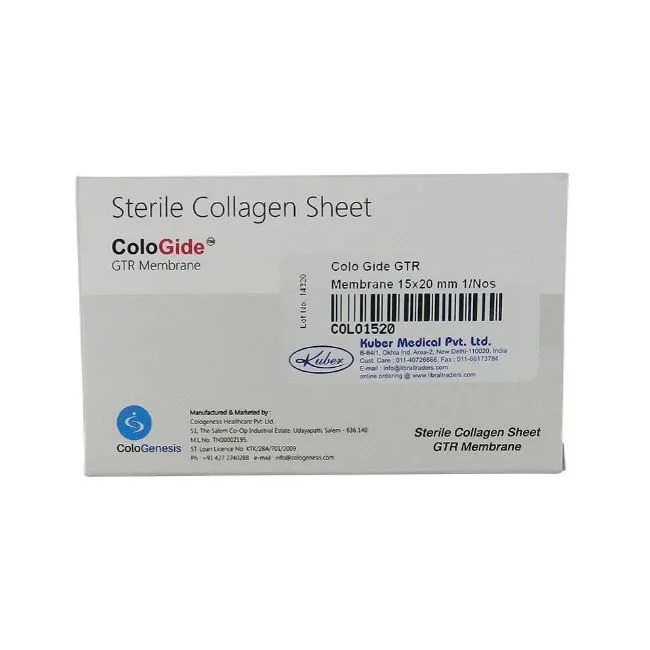 The ColoGide is derived from bovine source. It is a resorbable, non-friable barrier membrane obtained from highly purified type-I collagen derived from specially controlled and certified animals and is highly purified to avoid any antigenicity. Indication Do not use if blister is open or damaged. Do not use the product...