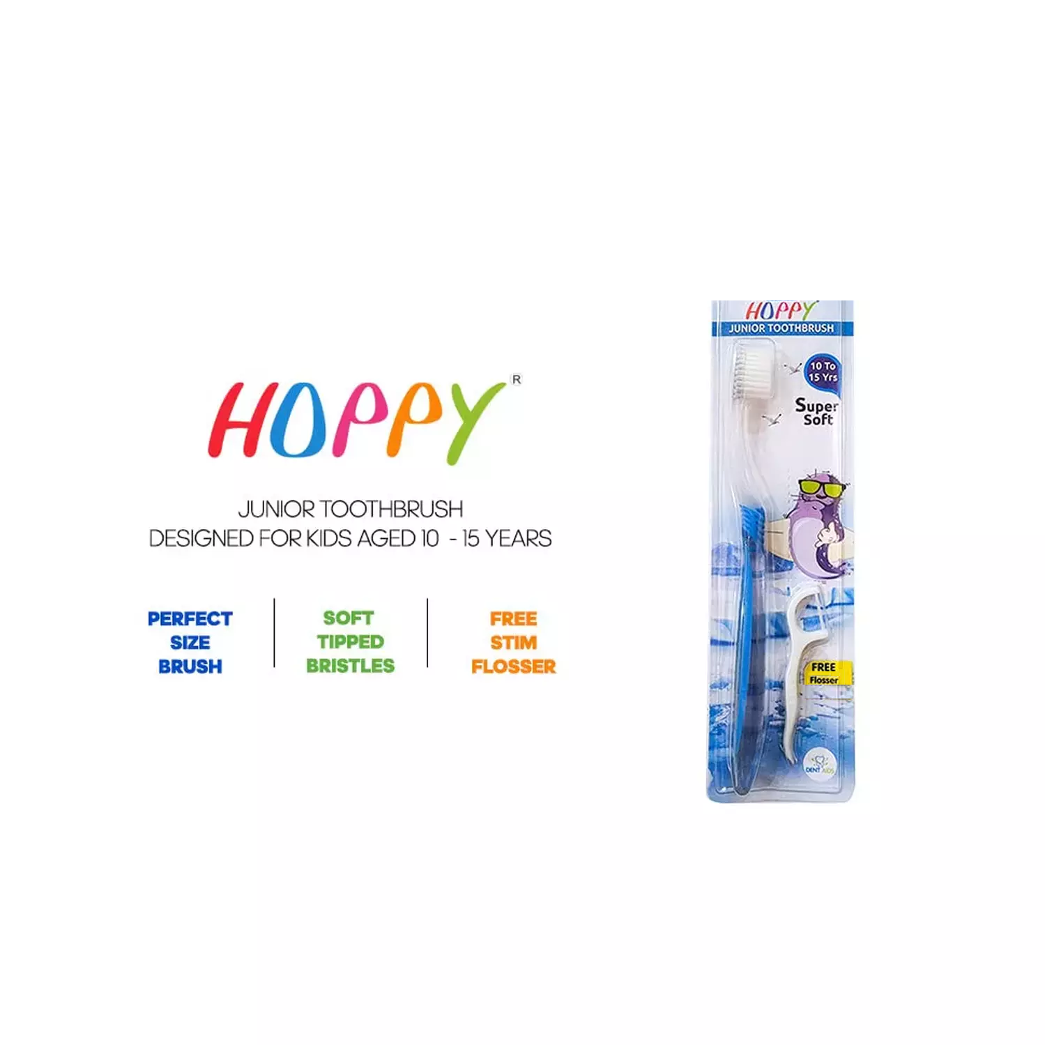 STIM Hoppy Junior Kids Toothbrush is specially designed for children, featuring soft bristles and an easy-grip handle for gentle and effective cleaning. Helps build healthy brushing habits from a young age.
