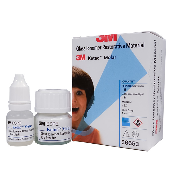 Ketac Molar is a Glass Ionomer Filling Cement used to restore teeth. It is a white, putty-like material that is placed in the tooth cavity and then light-cured. It is available in both regular and light-cured forms.