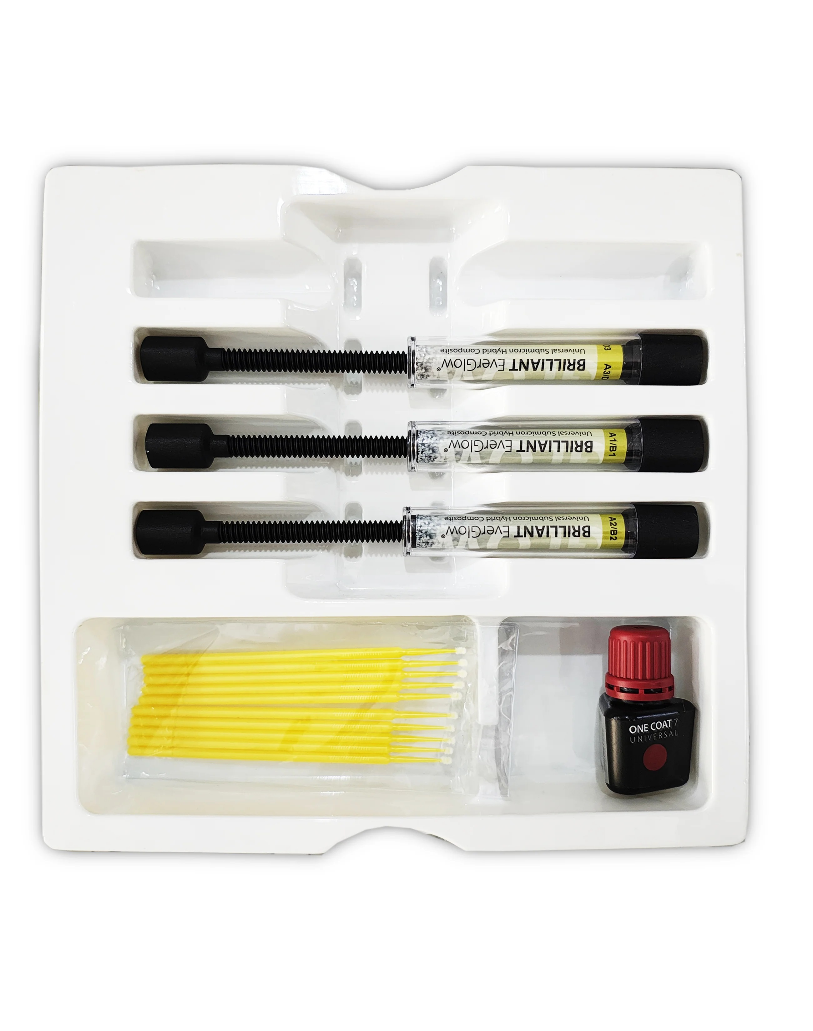 Brilliant EverGlow is a universal composite of the latest generation and a true all-round material. It has been developed with special focus on high, long-lasting gloss and shade aesthetics and handling convenience. The shade assortment comprises three opacities: 3 opaque masking shades, 7 universal Duo Shades suitable for single-shade restorations...