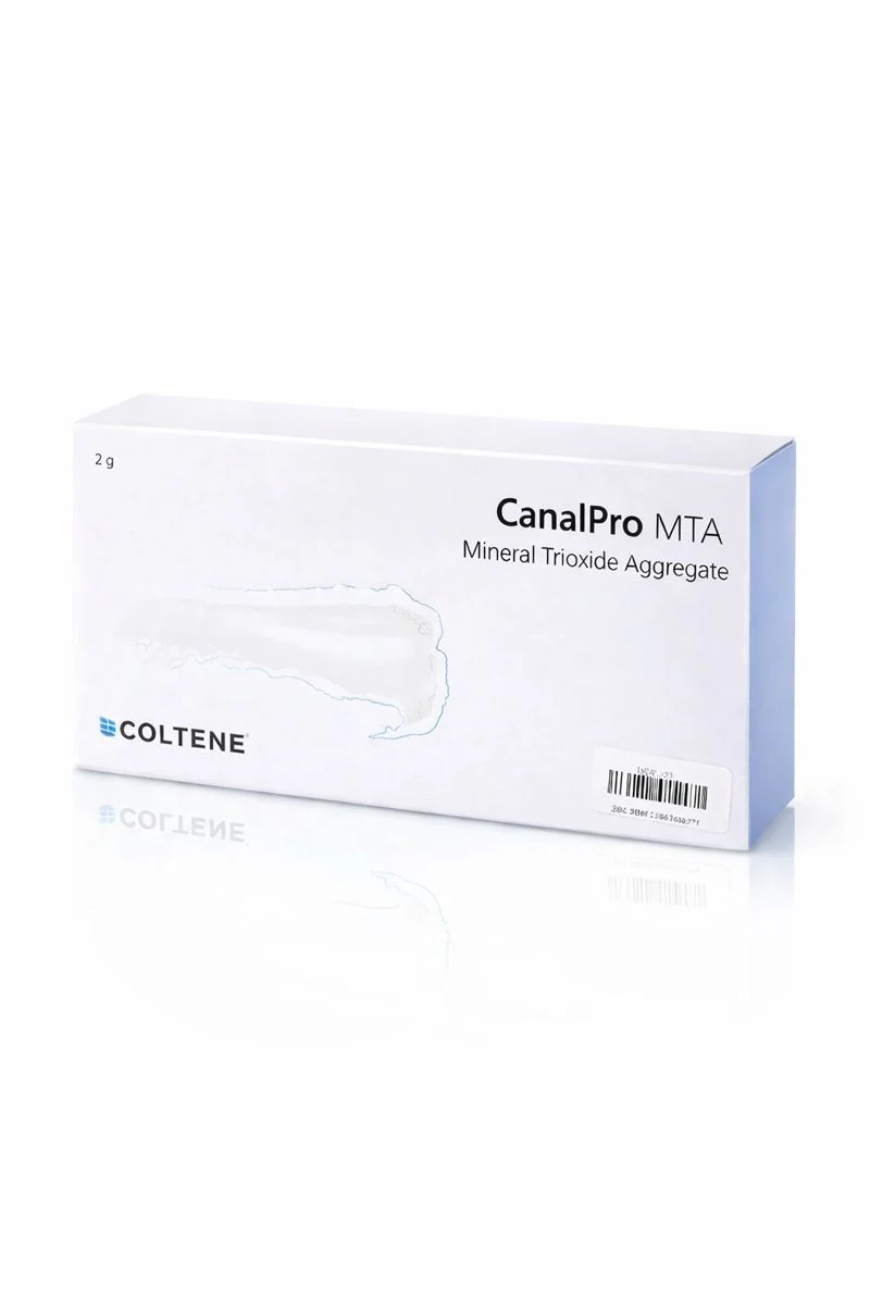 Coltene CanalPro MTA is a mineral trioxide aggregate used in endodontic dental procedures such as pulp capping, perforation repair, apexification, and root-end filling. It provides good sealing ability, biocompatibility, and supports tissue healing. Suitable for professional dental use.