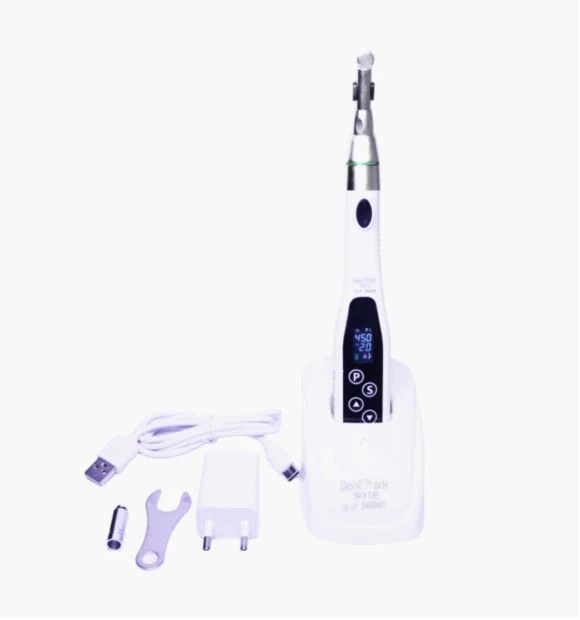 Dentmark Endo motor with wireless LED has a compact design with six different program (memory set procedures). It can be automatically reversed, operates in continuous and reciprocating motion. With an in-build rechargeable battery, power lasts for over three hours of continuous work.
