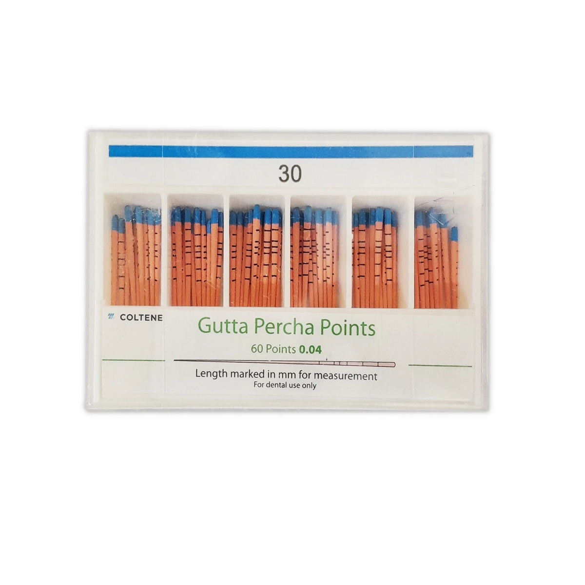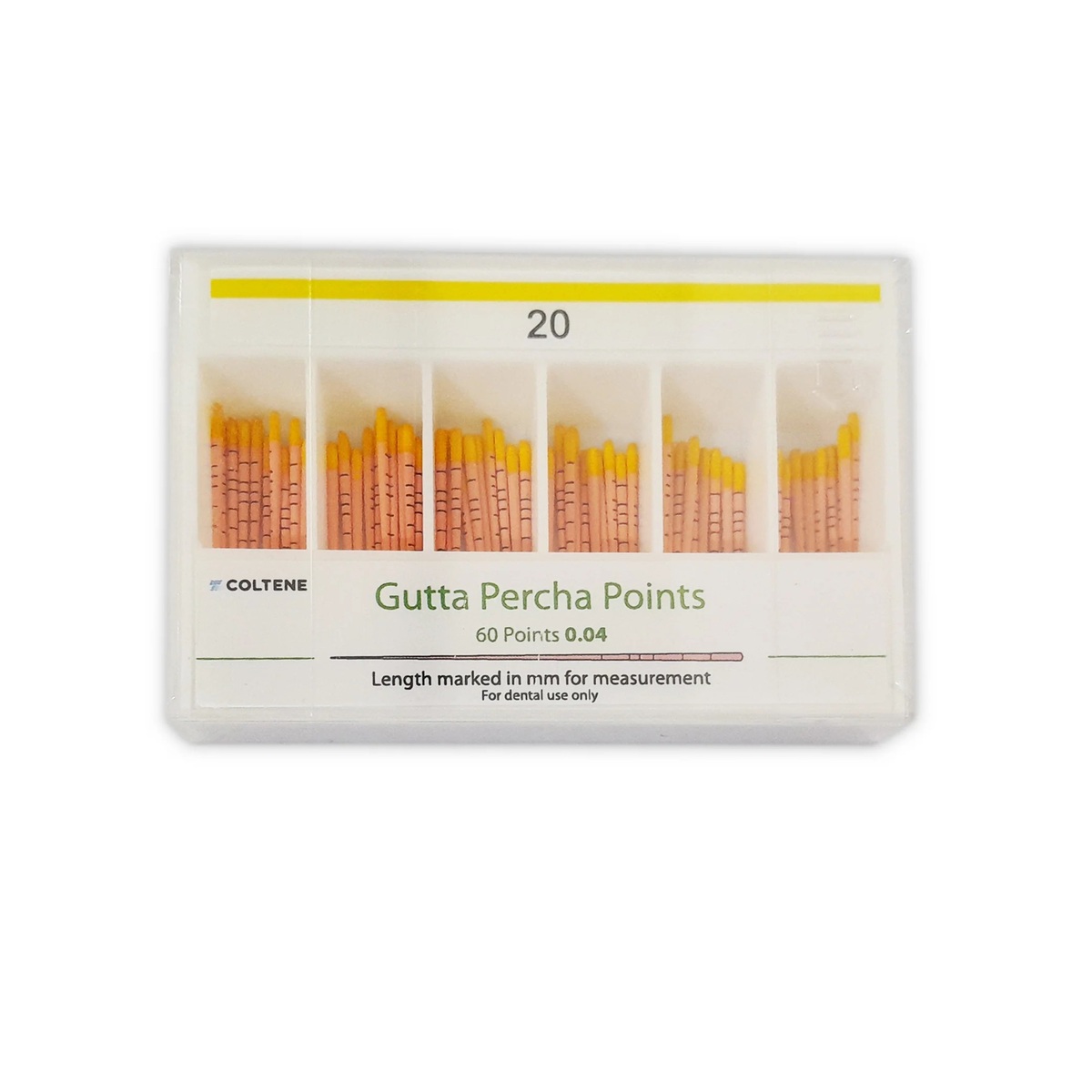 Guttapercha points are ideal for lateral, vertical and thermal condensation, for perfect three-dimensional obturation. The latex-free, fully automatically produced and laser-measured guttapercha points are manufactured at the COLTENE facility in Germany. Utilizes suitable materials to provide the required characteristics. The guttapercha points are available with different sizes and tapers.