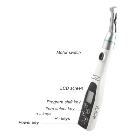 Dentmark Endo motor with wireless LED has a compact design with six different program (memory set procedures). It can be automatically reversed, operates in continuous and reciprocating motion. With an in-build rechargeable battery, power lasts for over three hours of continuous work.