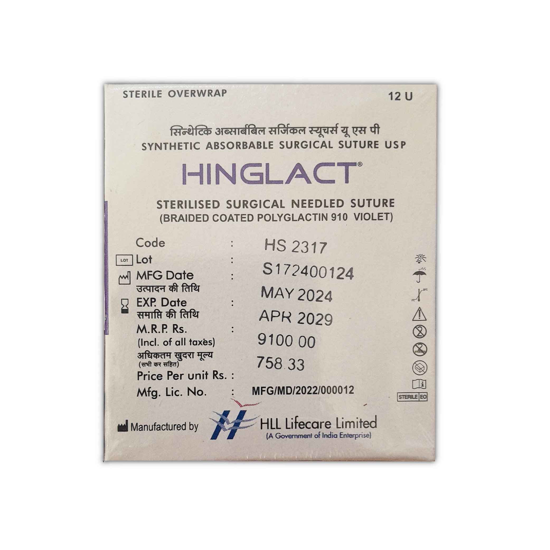 HINGLACT Absorbable Sterlised Surgical Needle Suture (Braided Coated Polyglactin 910 Violet) The Hinglact Suture epitomizes the pinnacle of surgical innovation, meticulously designed to meet the exacting standards of medical professionals. Informed by...
