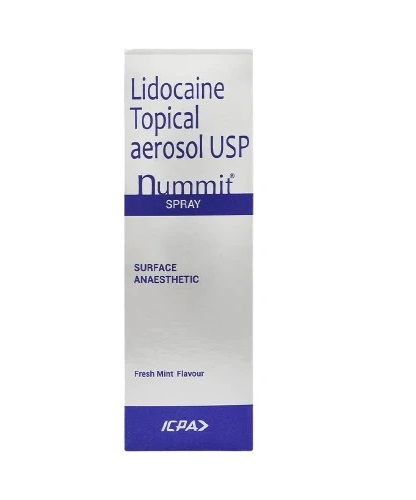 ICPA Nummit Topical Oral Spray is a specialized local anesthetic designed for effective pain relief in dental and medical procedures. Formulated with Lidocaine, this spray works by reversibly blocking nerve transmission in a targeted area, binding to sodium channels in the nerve membrane to prevent the entry of sodium ions during depolarization.