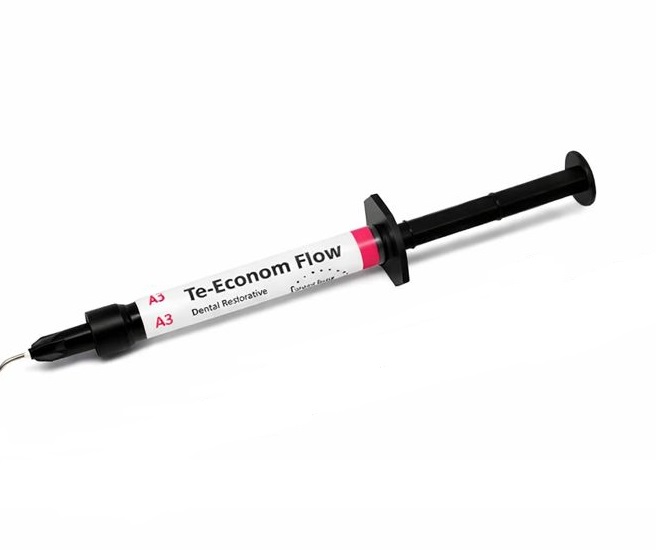 Ivoclar Te-Econom Flow Composite Syringe is a flowable, light-curing, radiopaque hybrid composite material designed for use in various dental restorative procedures.
