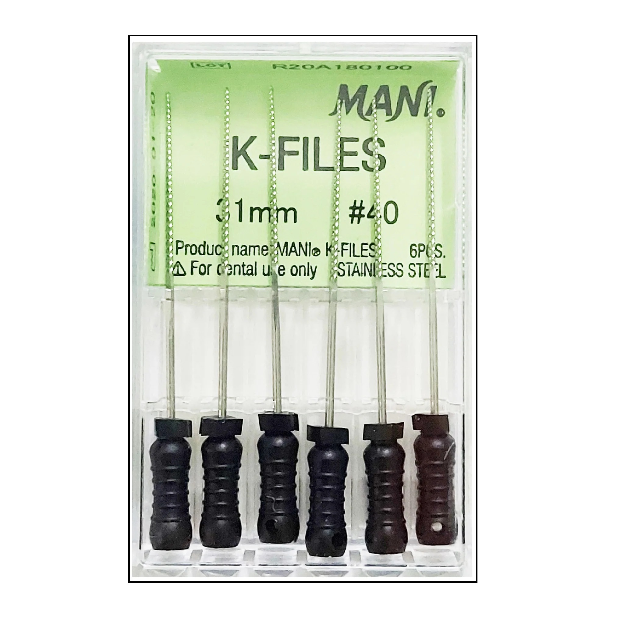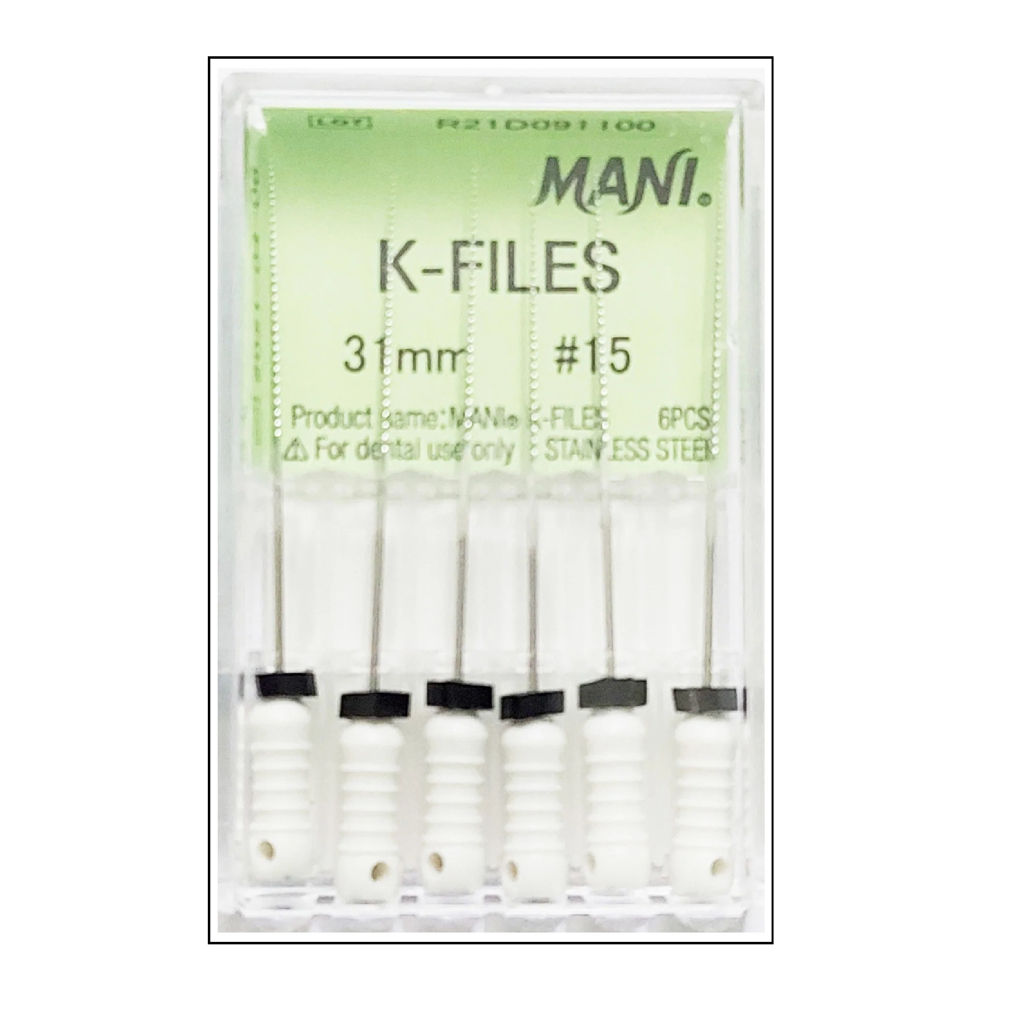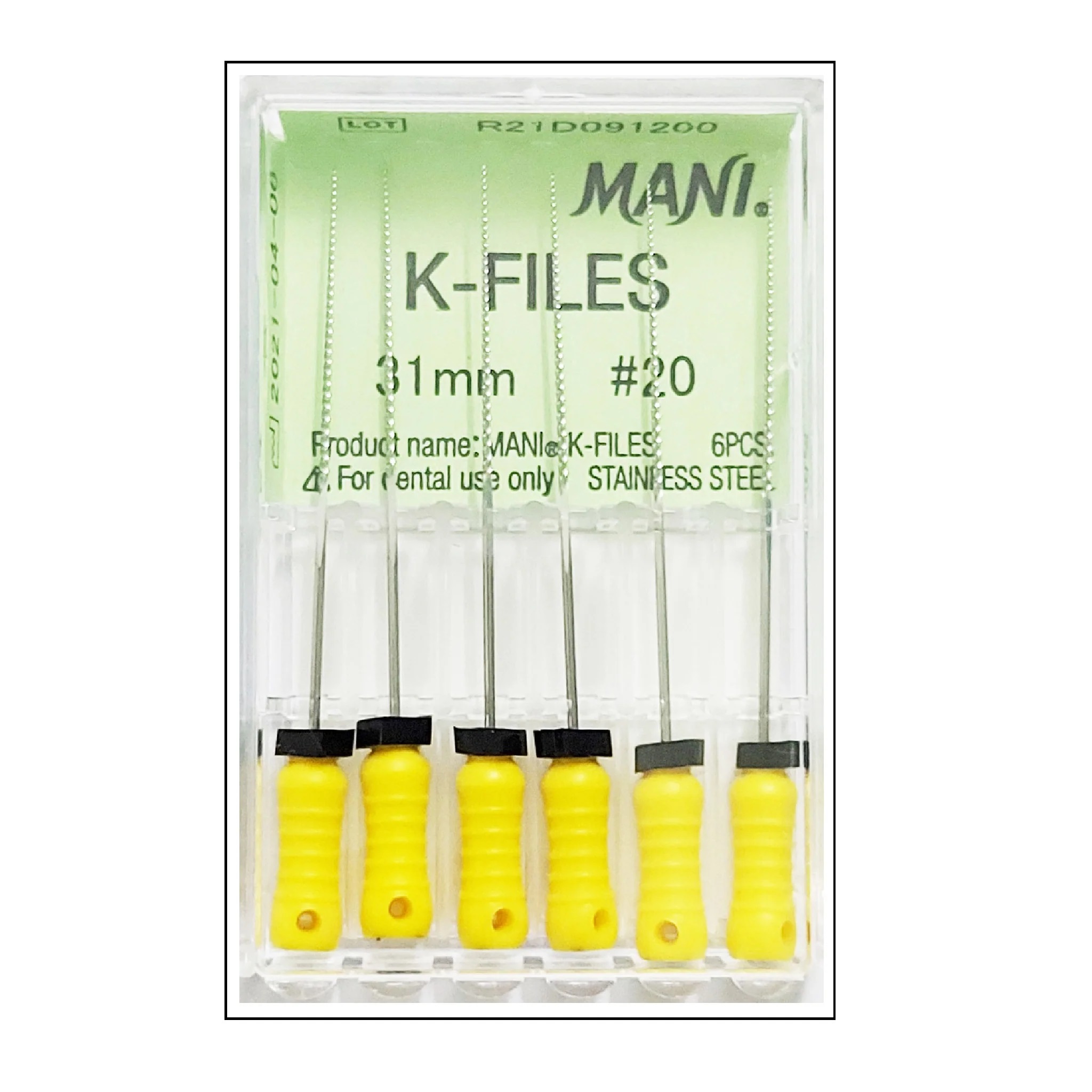 Extraordinarily sharp and mirror-like finished edges with high ductility make for excellent working characteristics. MANI’s original 18-8 hard-fiber stainless steel prevents corrosion after repeated cleaning and sterilization. Features This is the dental file with shank used for enlarging root canal. It is used by the movements of vertical reciprocation or lifting....
