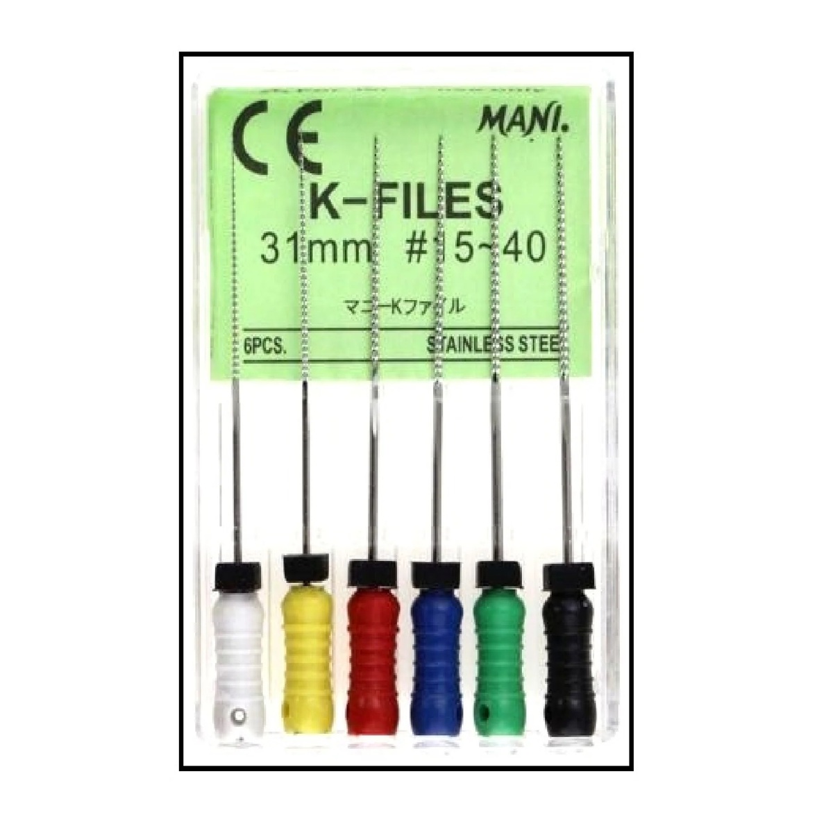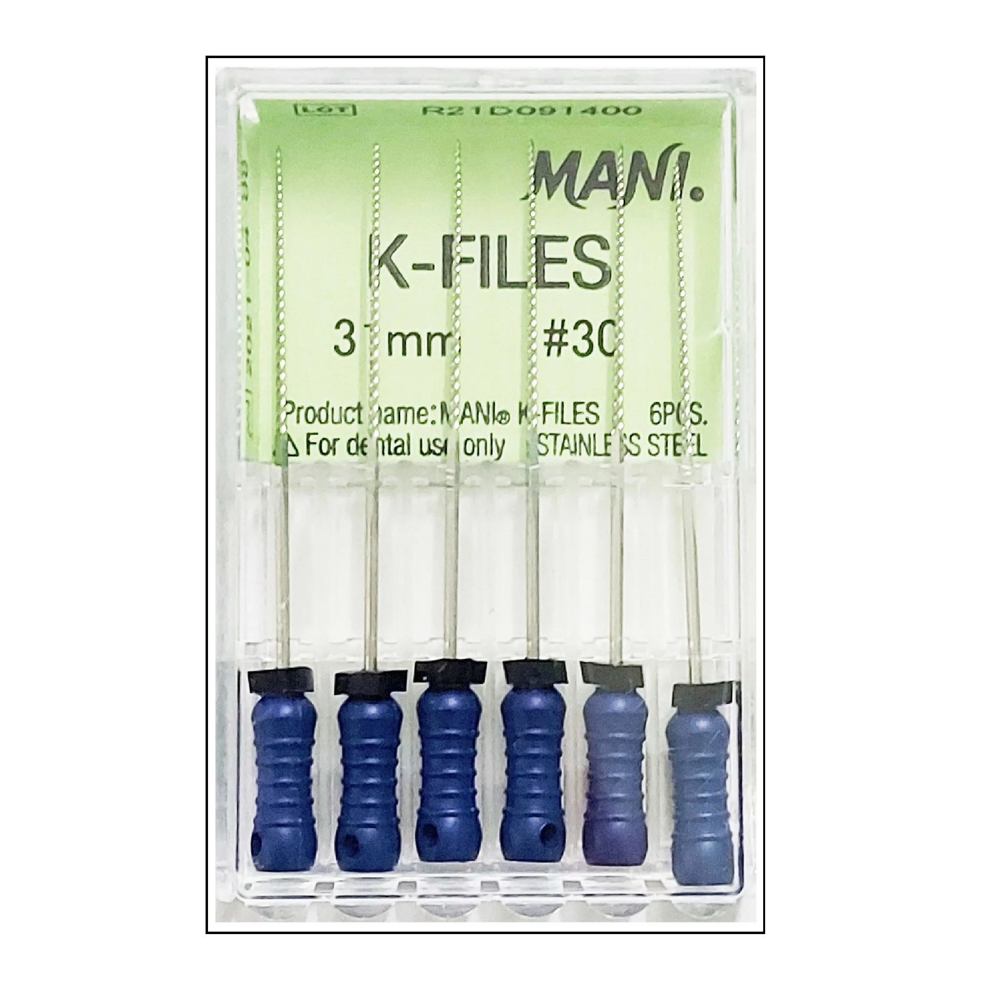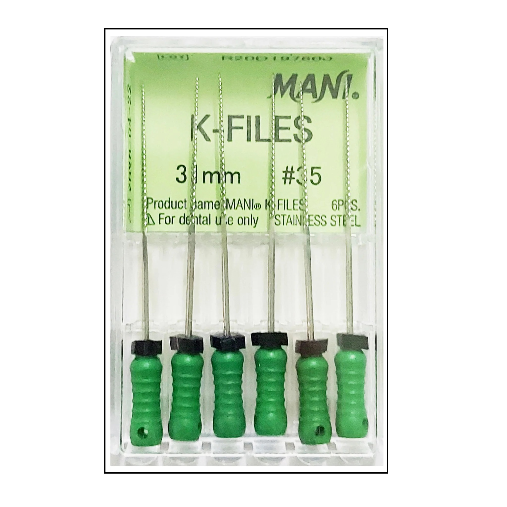 Extraordinarily sharp and mirror-like finished edges with high ductility make for excellent working characteristics. MANI’s original 18-8 hard-fiber stainless steel prevents corrosion after repeated cleaning and sterilization. Features This is the dental file with shank used for enlarging root canal. It is used by the movements of vertical reciprocation or lifting....