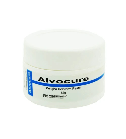 Alvocure is a dry socket treatment and post extraction dressing. It provides a soothing effect throughout the healing process. Its fibrous consistency allows for easy filling of the socket. The active agents are eugenol, butamben and iodoform. Composition Penghawar Olive Oil Calcium Carbonate Iodoform Eugenol Spearmint Oil and excipients Indication Treatment...