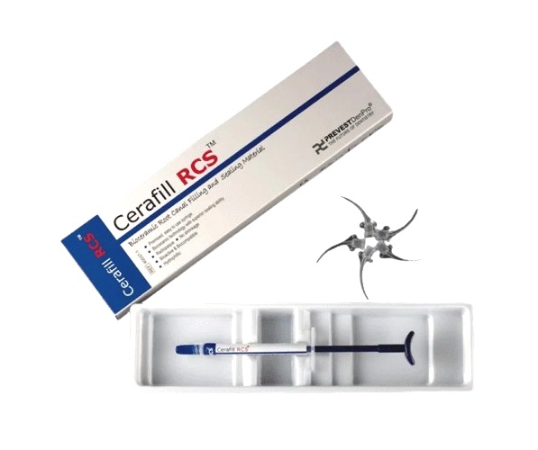 Prevest Cerafill RCS - Biocreamic Root Canal Filling and Sealing Material is ready to use premixed filling and sealing material which is based on the bioceramic technology. It is an alumina free calcium silicate-based material with excellent handling characteristics and superior physical properties. It sets with moisture naturally present within dentine.
