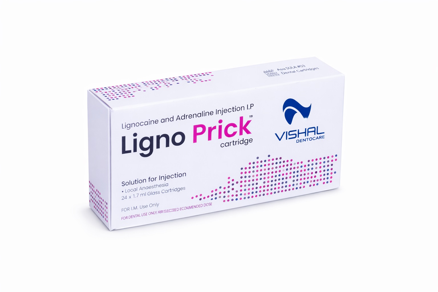 The Vishal DentoCare Ligno Prick Cartridges (Pack of 50) are a trusted solution for effective and reliable dental anesthesia, designed specifically for professional use in clinical settings. Each cartridge is prefilled with high-quality lignocaine hydrochloride and adrenaline, offering precise and long-lasting pain relief during various dental procedures. These cartridges are ideal for ensuring patient comfort during extractions, root canals, and other invasive treatments. Engineered for convenience, the cartridges are sterile and compatible with most standard dental syringe systems.